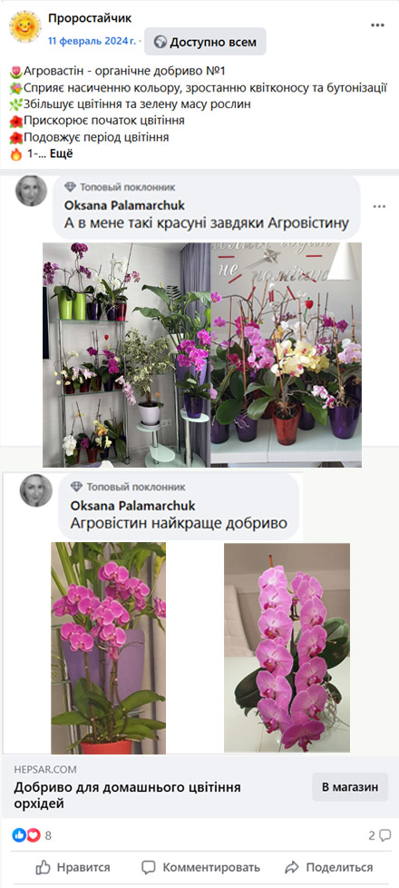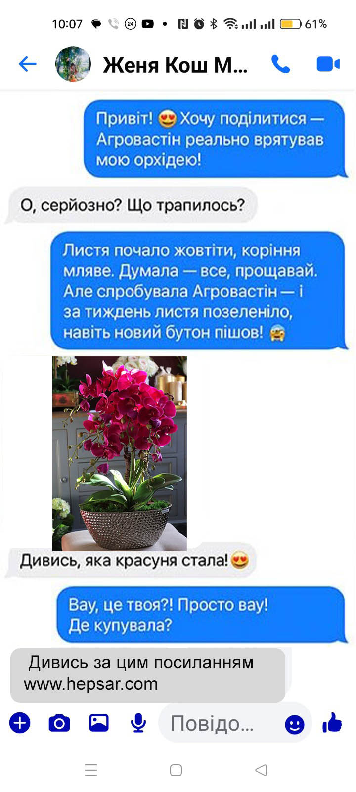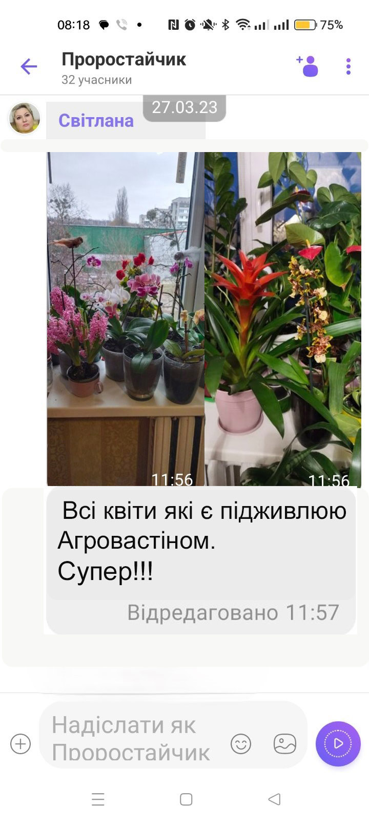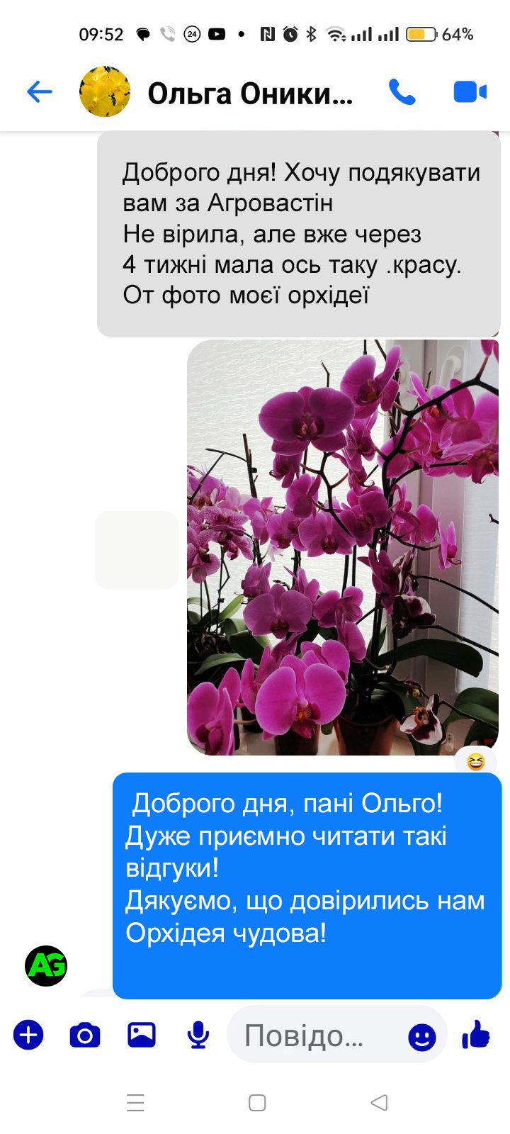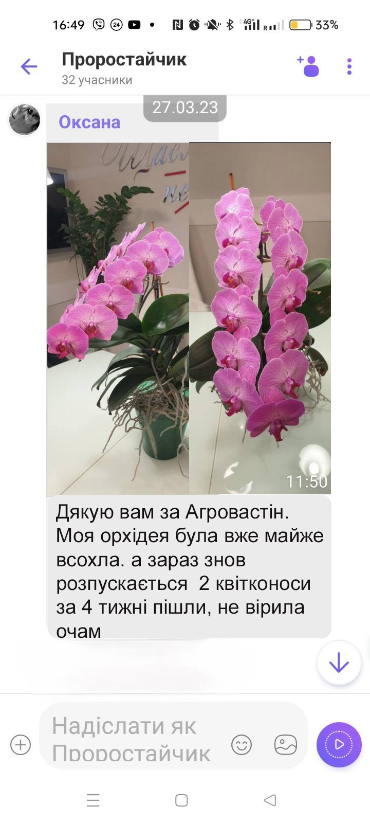 Агровастін — органічне добриво, створене на основі досліджень Harvard, Florida та Cornell. Добриво забезпечує кореневе та позакореневе живлення ваших орхідей. Безпечне для використання вдома й в офісі. Не шкідливе для дітей і тварин. Не викликає алергічних захворювань. Без запаху.