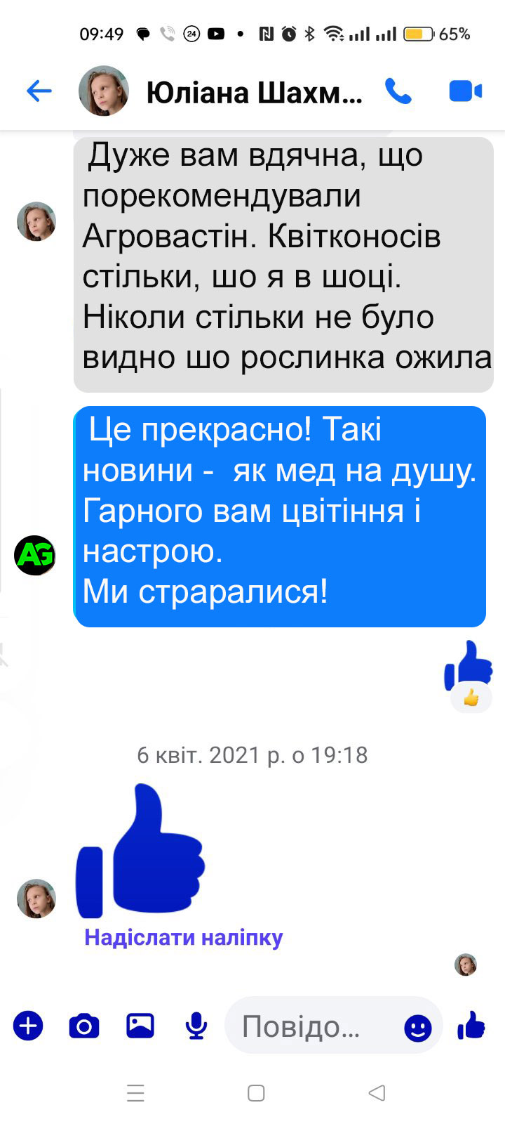 Наносимо розчин Агровастін розпилювачем по листочках раз на 2 тижні. Робочий розчин один ковпачок на 1 л води.